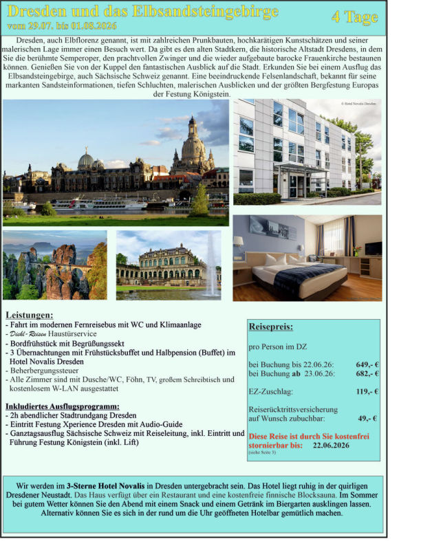 Die genauen Zustiege und Uhrzeiten teilen wir Ihnen ca. 10-14 Tage vor Abfahrt schriftlich mit.