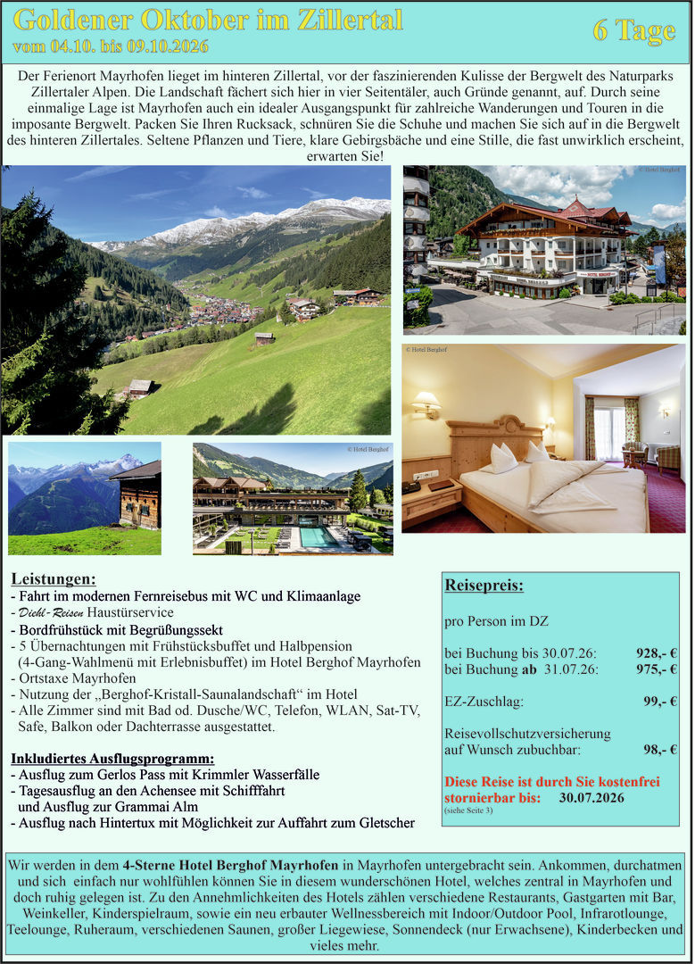 Die genauen Zustiege und Uhrzeiten teilen wir Ihnen ca. 10-14 Tage vor Abfahrt schriftlich mit.