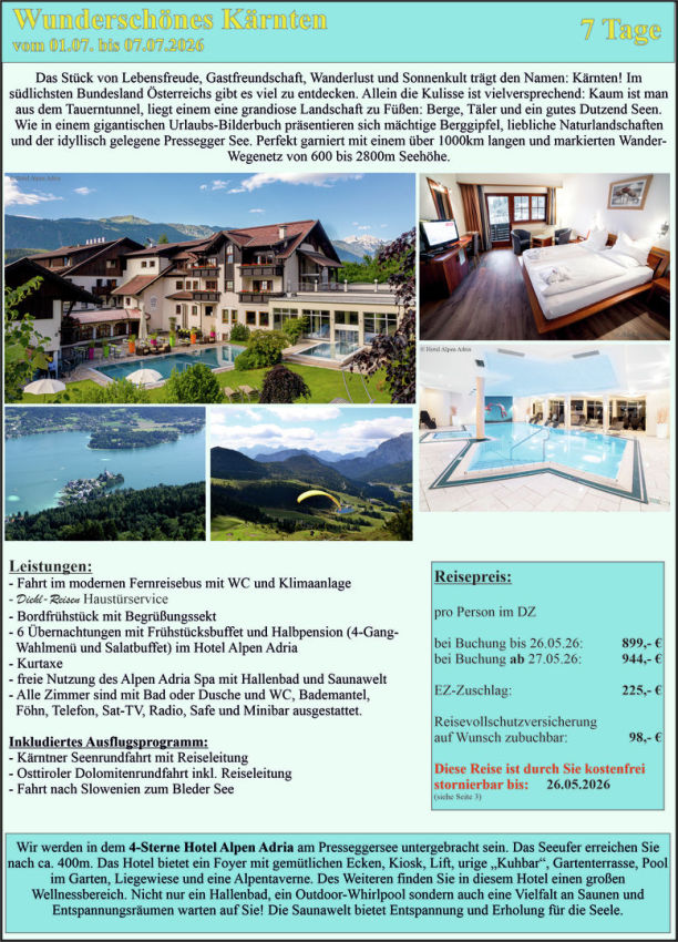 Die genauen Zustiege und Uhrzeiten teilen wir Ihnen ca. 10-14 Tage vor Abfahrt schriftlich mit.
